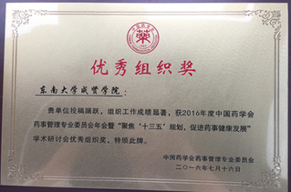 2016.9,桃子视频 再次荣获中国药学会药事管理专业委员会学术研讨会优秀组织奖