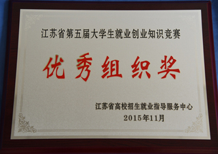 2015.12,我院荣获江苏省第五届大学生就业创业知识竞赛“优秀组织奖”