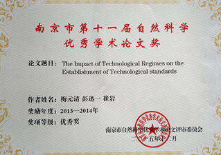 2016.3,我院两篇论文获评南京市自然科学优秀学术论文优秀奖