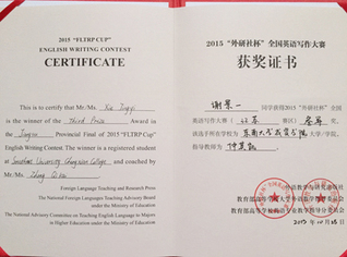 2015.11,我院学生在2015年“外研社杯”全国英语大赛中获佳绩