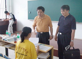 赵启满副校长与黄在宇总经理向志愿者询问情况 |