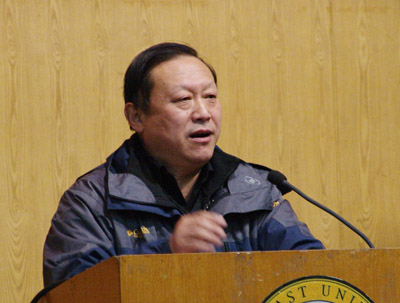 土木工程系党总支书记王锦麒在会上发言 学工部部长唐小平在会上发言