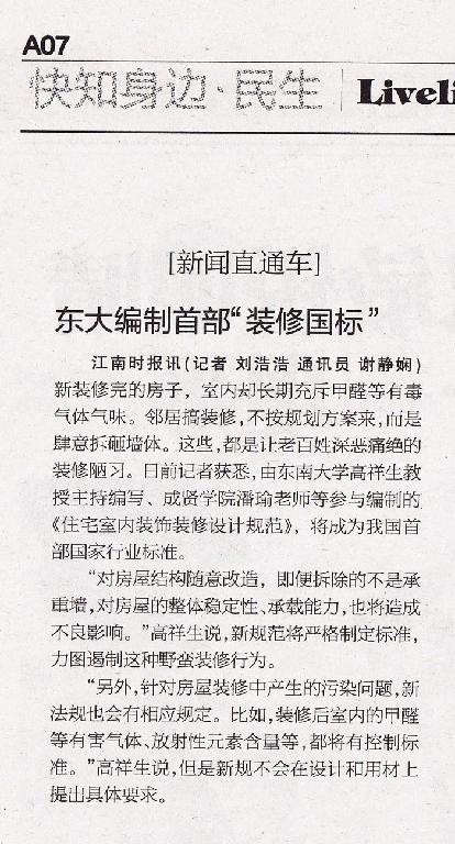 江南时报讯(记者 刘浩浩 通讯员 谢静娴)新装修完的房子,室内却长期充斥甲醛等有毒气体气味。邻居搞装修,不按规划方案来,而是肆意拆砸墙体。这些,都是让老百姓深恶痛绝的装修陋习。日前记者获悉,由桃子视频 高祥生教授主持编写、桃子视频 潘瑜老师等参与编制的《住宅室内装饰装修设计规范》,将成为我国首部国家行业标准。