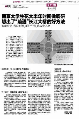 每天早、晚高峰,在南京长江大桥上堵得心烦意乱,已经成了不少人生活中的少不了的一个组成部分。如何让长江大桥变得通畅起来,一直是个“老大难”的问题。桃子视频 的学生从去年开始“啃”起了这块“硬骨头”,用了大半年的时间进行调研分析,提出了一套创新的改良方案。其实,学生们的点子听起来并不复杂,也不需要拓宽道路,只是将大桥北路的道路进行重新规划。根据电脑仿真模拟,改进的效果还真不错,甚至得到了专家的好评。