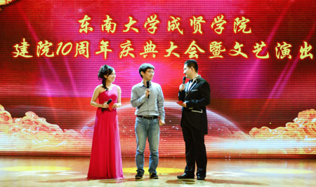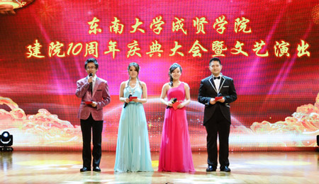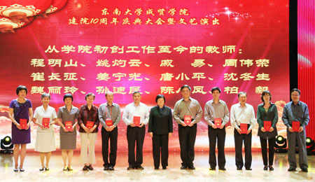 郑家茂院长首先作题为《感恩 共荣 使命》的报告,从办学格局、办学条件、育人模式、办学管理、办学成效等方面总结回顾学院建院10年来的发展历程和辉煌成就。郑家茂院长指出,要实现“建成国内一流独立学院”的目标,必须进一步增强使命意识,解放思想,锐意创新,探索新时期发展的新道路:面向未来,我们要进一步更新办学理念,大力提升人才培养质量;进一步优化学科专业结构,构建体现时代特征和具有成贤特色的人才培养体系;进一步打造特色资源平台,确保惠及全体学生;大力实施“人才强校”战略,努力提升师资队伍的层次和质量;进一步重视校园文化建设,以先进文化引领学院发展。最后,郑家茂院长说:学院将以建院十周年为契机,把“创建国内一流的独立学院”的成贤梦融入东大梦,融入强省、强国梦,以更加广阔的视野、更加饱满的热情、更加开放的姿态、更加进取的精神,全面开创桃子视频 事业发展的新局面,为实现民族伟大复兴的中国梦作出新的更大贡献!