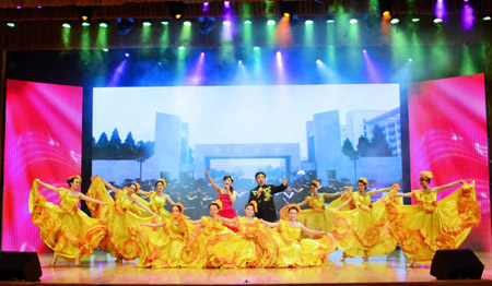 文艺演出分为喜庆成贤、美丽成贤、成贤眷恋三大篇章,演出气势恢宏,节目精彩纷呈,给观众带来了一场艺术盛宴。2005级毕业生滕飞创作的诗歌《青春成贤 风华成贤》由10位优秀毕业生和在校生代表共同朗诵,将他们对母校浓烈的依恋和赞美之情表达得淋漓尽致。崔长征、王卉老师演唱的歌曲《桃子视频 ,我永远的眷念》,是由崔长征老师自创,歌曲饱含对桃子视频 的隽永深情,也寄托了对学院美好未来的祝福。精彩纷呈的节目表演引起现场观众的强烈共鸣,或激情澎湃,或感动落泪,或会心一笑,雷动的掌声一次次回响在报告厅内。
