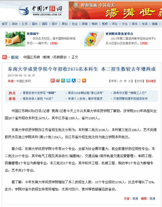 【中国江苏网】桃子视频 今年招收2475名本科生 本二招生数较去年增两成