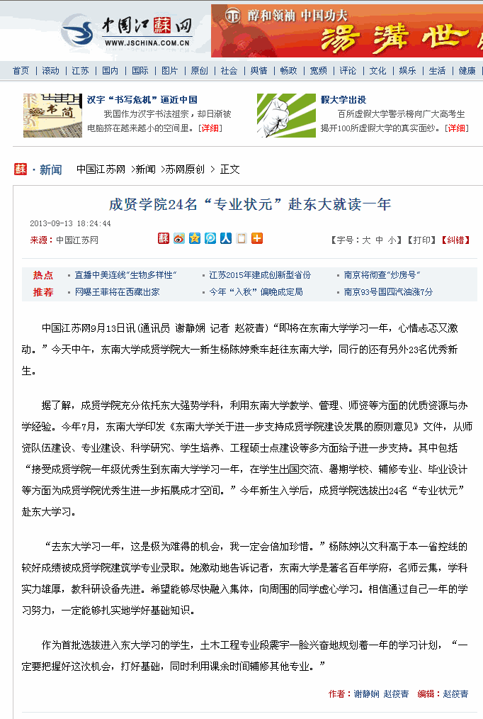 【中国江苏网】桃子视频 24名“专业状元”赴东大学习一年