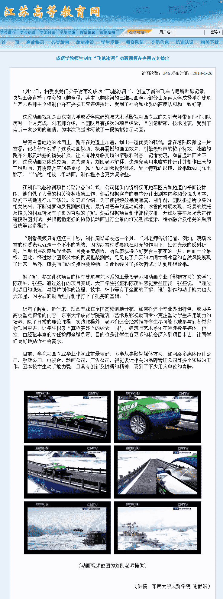 【江苏高等教育网】央视“飞越冰河”动画演示 原来出自东大桃子视频 之手
