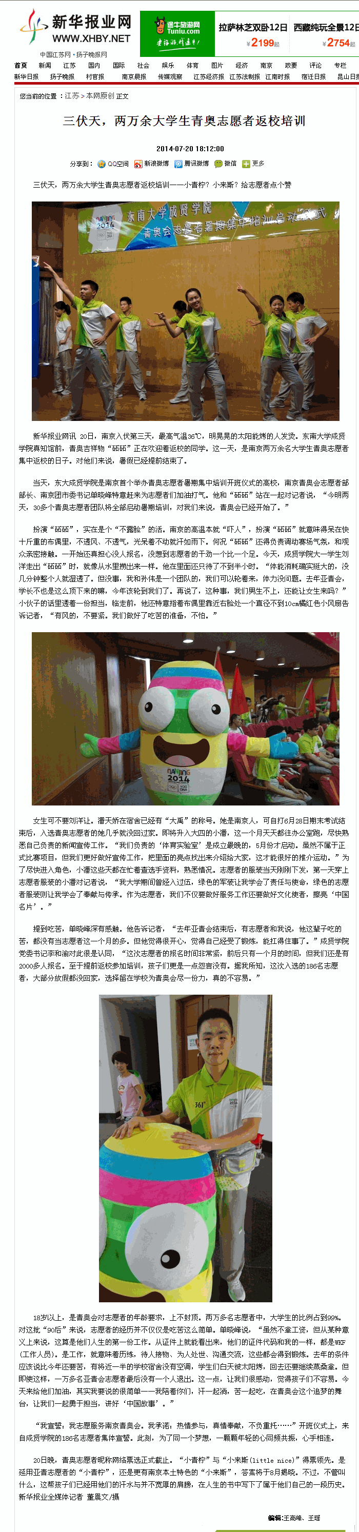 【新华报业网】三伏天,两万余大学生青奥志愿者返校培训