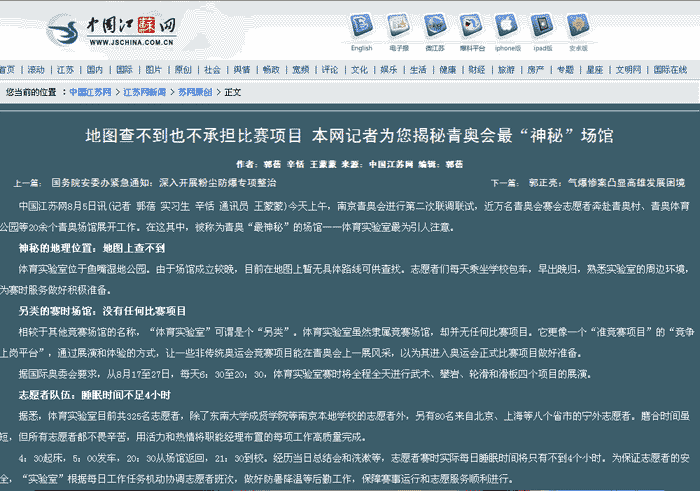 【中国江苏网】本网记者为您揭秘青奥会最“神秘”场馆