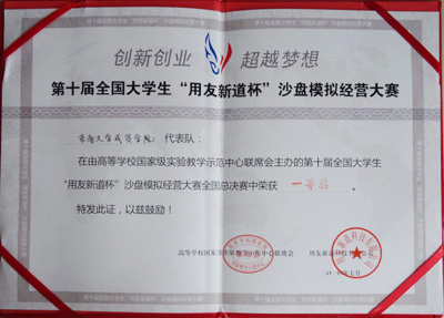 第十届“用友杯”全国大学生沙盘模拟经营大赛,我院代表队凭借出色的发挥赢得全国一等奖。