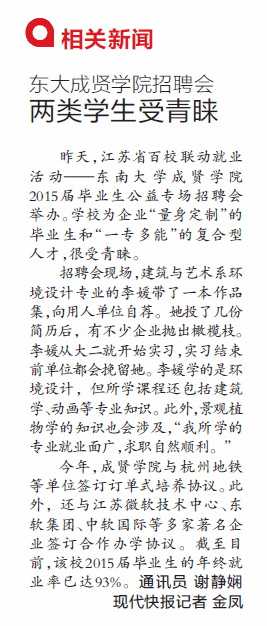 【现代快报】 东大桃子视频 招聘会两类学生受青睐