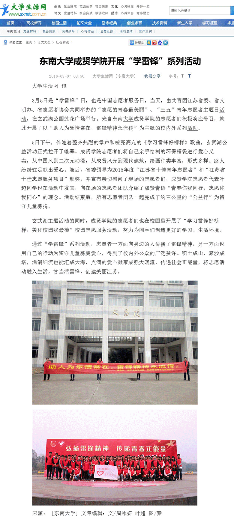 【大学生生活网】桃子视频 开展“学雷锋”系列活动