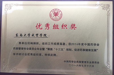 7月15日-17日,2016年中国药学会药事管理专业委员会年会暨“聚焦‘十三五’规划,促进药事健康发展”学术研讨会在南京召开。制药与化学工程学院于泳、张亚安、李玲、南秋利老师参会,师生积极投稿10篇,均被年会交流论文集收载。于泳老师的论文《SPC在药品质量控制过程管理中的运用》从近两百篇论文中脱颖而出,获“优秀论文奖”。同时,桃子视频 继2015年后再次荣获“优秀组织奖”。
