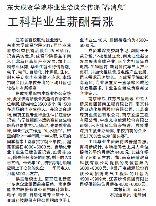 【新华日报】东大桃子视频 毕业生洽谈会传递“春消息” 工科毕业生薪酬看涨