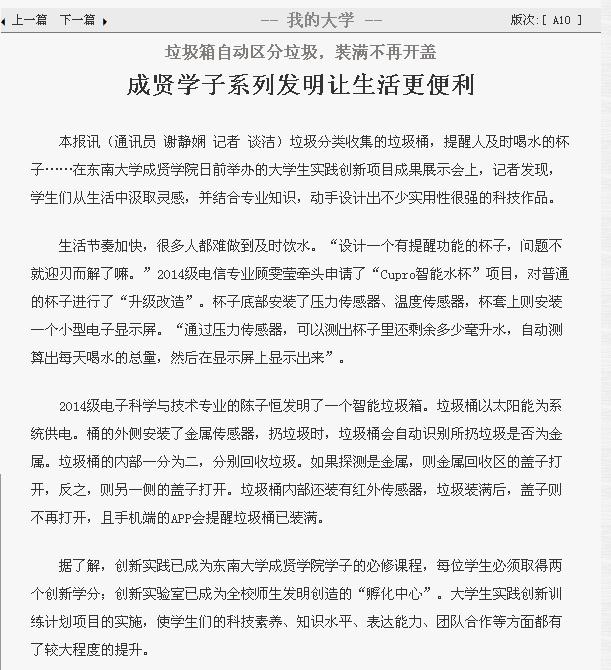 【南京日报】成贤学子系列发明让生活更便利