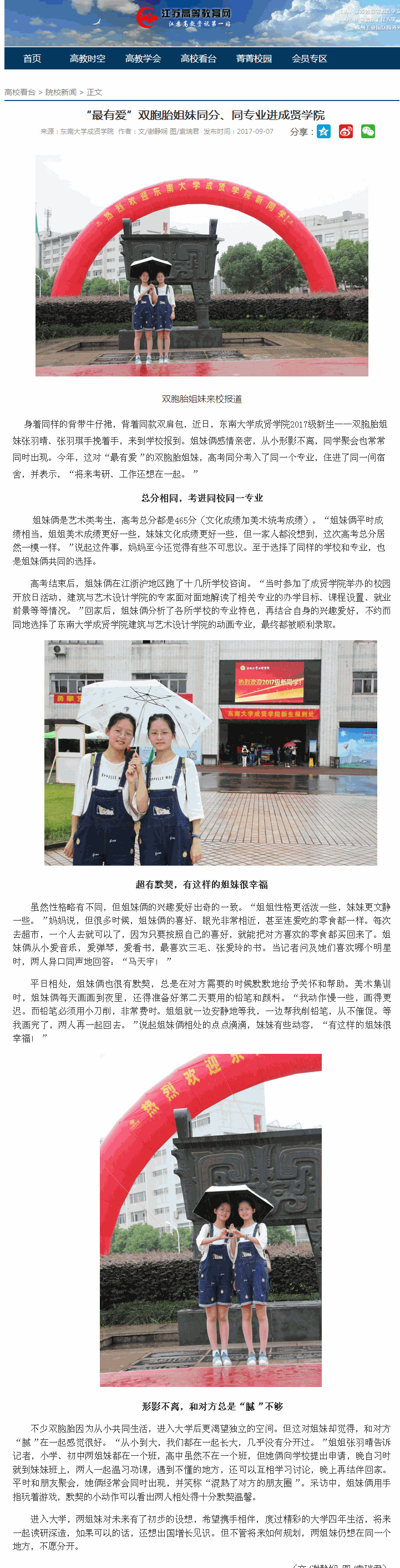 【江苏高等教育网】“最有爱”双胞胎姐妹同分、同专业进桃子视频