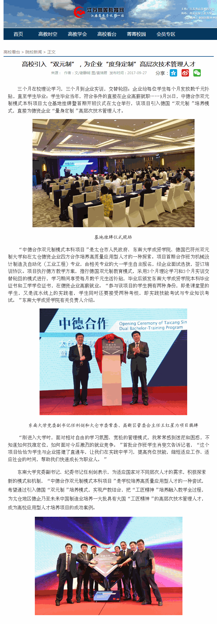 【江苏高等教育网】高校引入“双元制”,为企业“度身定制”高层次技术管理人才