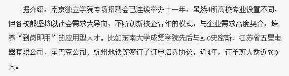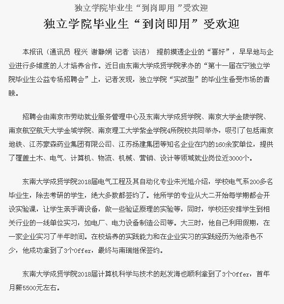 【南京日报】独立学院毕业生“到岗即用”受欢迎