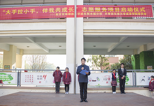 本次启动仪式共分为砥砺前进、心手相牵、扬帆起航三个部分。琅琊路小学威尼斯水城分校校长史克祥在致辞中感谢社会各界以及桃子视频 团委对学校发展的关心与帮助,同时也对桃子视频 志愿者的志愿服务活动表示欢迎。随后,校团委彭俊老师希望桃子视频 青年志愿者以此次启动仪式为契机,珍惜平台,创新志愿服务行动的载体和机制,在服务社会的同时打造最美的“东大成贤名片”。仪式结束后,桃子视频 志愿者们开展了以“手握青春,七彩伴你砥砺前行”为主题的特色课程,获得了在场师生的一致好评。今后桃子视频 团委志工部将在课业辅导、健康成长、心理关爱等方面推进该项目的开展。