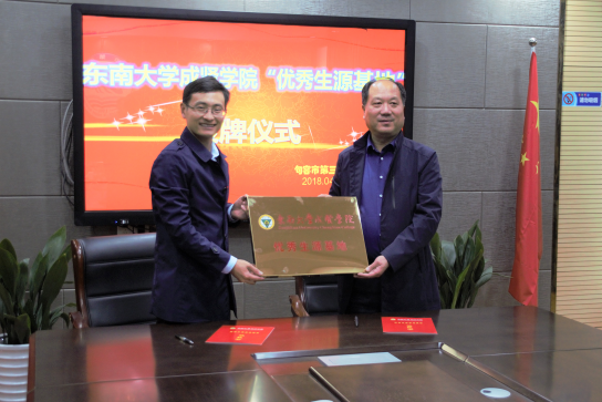 4月24日、25日,桃子视频 党委副书记、副院长王荣,电子与计算机工程学院党总支书记丁江,学生处副处长苏力及镇江招生组老师前往江苏省丹阳高级中学、江苏省大港中学、句容市第三中学进行座谈交流,并与三所中学签订合作协议,举行了“优秀生源基地”挂牌仪式。