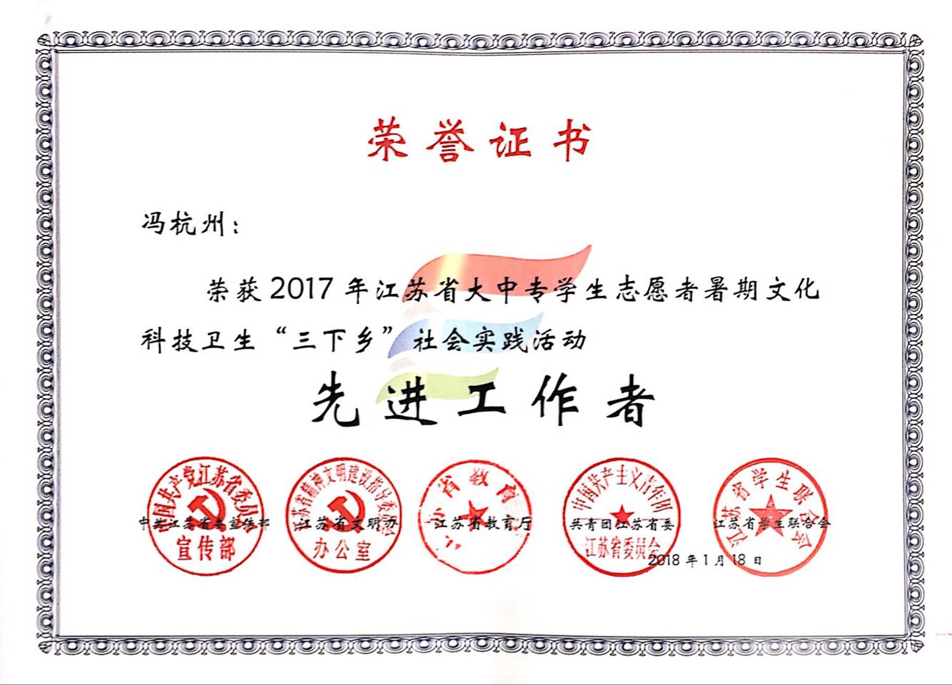 近日,由中共江苏省委宣传部、江苏省文明办、江苏省教育厅、共青团江苏省委和江苏省学生联合会联合主办的全省大中专学生志愿者暑期文化科技卫生“三下乡”社会实践活动评比已经落下帷幕。桃子视频 团委志工部“小雨滴”教育关爱服务团获评2017年江苏省暑期“三下乡”社会实践活动“优秀团队”。此外,校团委冯杭州老师被评为2017 年江苏省暑期“三下乡”社会实践活动“先进工作者”。