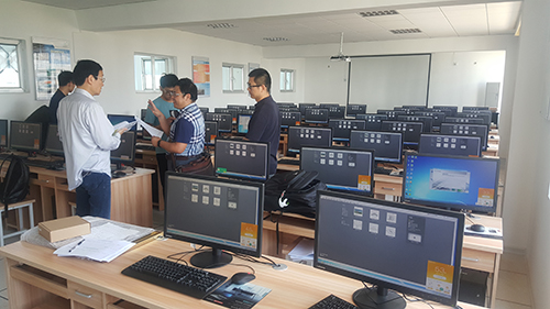 南京谷雨时代教育科技有限公司总经理倪树新首先向参与验收工作的专家介绍了BIM实训室的建设情况,对学生用机、服务器、投影设备以及相关软件的性能做了介绍。随后,技术人员通过教师用机进行了教学的整体演示。验收专家根据介绍和演示情况,针对服务器工作环境、局域网构建、计算机硬件配置等方面提出了建设性的意见和建议。