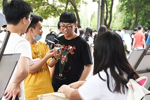 展示会上,参展的项目组成员在指定区域以展板介绍、实物演示等方式,展示了项目研究成果,并对项目创新点、研究思路、成果应用价值等进行了分析与讲解,吸引了众多师生驻足观看。其中,《基于Raspberry Pi与Arduino的智能家居电器控制系统》《分子印迹催化剂在有机反应中的应用研究》《中车南京海泰新基地三维宣传影片》更是以其丰富的创意与大胆的创新赢得了掌声与肯定。
