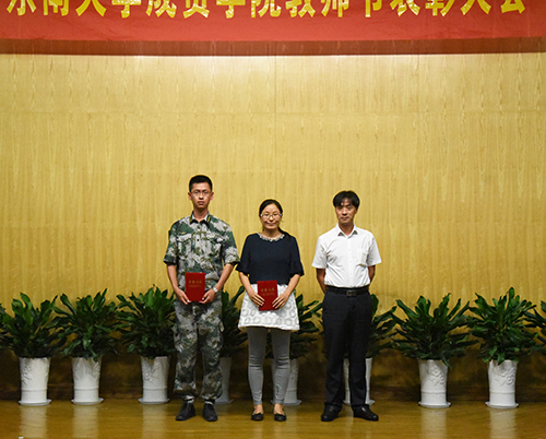 会上,董梅芳副院长宣读了学校教职员工在2017—2018学年获得的各类奖项。学校领导分别为获奖先进集体和个人颁发证书,并与他们亲切合影。桃子视频 杰出校友彭山宏先生在桃子视频 设立了“美达灌装机械”奖教金和奖学金,奖励桃子视频 机械与电气工程学院的优秀教师和学生,并现场为获奖教师进行奖教金颁奖。