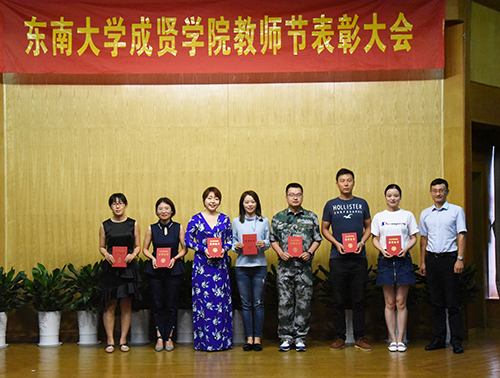 学生代表2016级电子科学与技术专业吉志彪同学代表全校同学向老师们致以最衷心的感谢、最崇高的敬意和最真诚的祝福,并呼吁全校学生传承“止于至善”优良学风,用自己的行动证明大学青春无悔,在老师指引下创造属于成贤与自己的光明未来。
