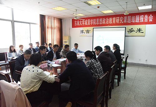 10月17日下午,桃子视频 2017年度思想政治教育研究课题结题报告会在实验大楼103会议室召开。会议专程邀请到南京信息工程大学数学与统计学院党委副书记徐锋华,校党委书记徐悦,党委副书记、副院长王荣,高建国教授,学生处处长唐小平共同担任评委,各课题组老师和全体青年辅导员共同参加报告会。