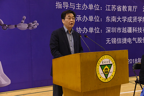 3日上午,开幕式在桃子视频 后藤体育馆举行。桃子视频 党委书记徐悦致欢迎词,江苏省科协副巡视员杨文新、江苏省自动化学会秘书长李世华教授分别致辞,江苏省教育厅高教处副处长徐庆宣布大赛开幕。学院副院长董梅芳主持开幕式。