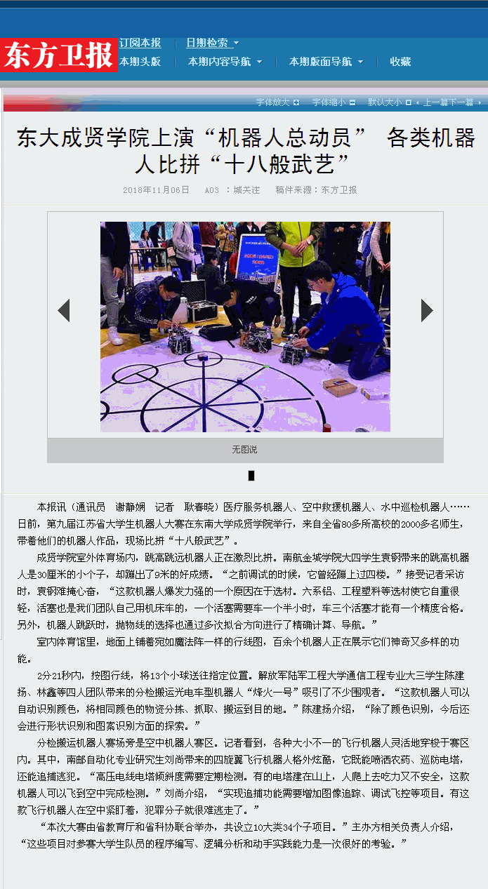 【东方卫报】东大桃子视频 上演“机器人总动员”各类机器人比拼“十八般武艺”