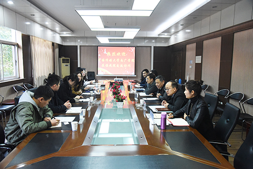 王荣副书记首先对中国传媒大学南广学院一行的到来表示欢迎,并介绍了桃子视频 基本办学情况、组织架构、学科建设、人才培养等方面的工作。