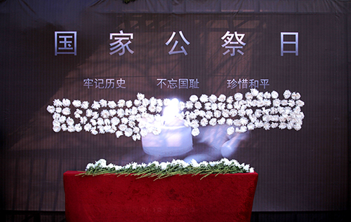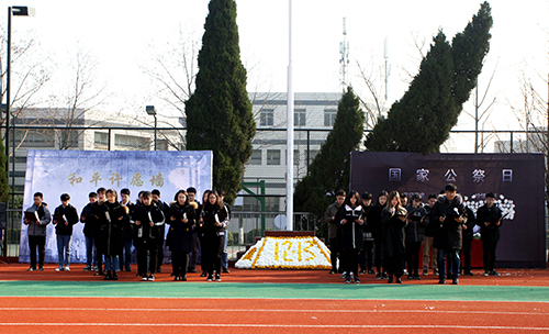 早上七点整,国旗团支部在操场举行了升国旗、降半旗仪式,支部全体成员静默注视并表达对南京大屠杀遇难者的哀悼之情。
