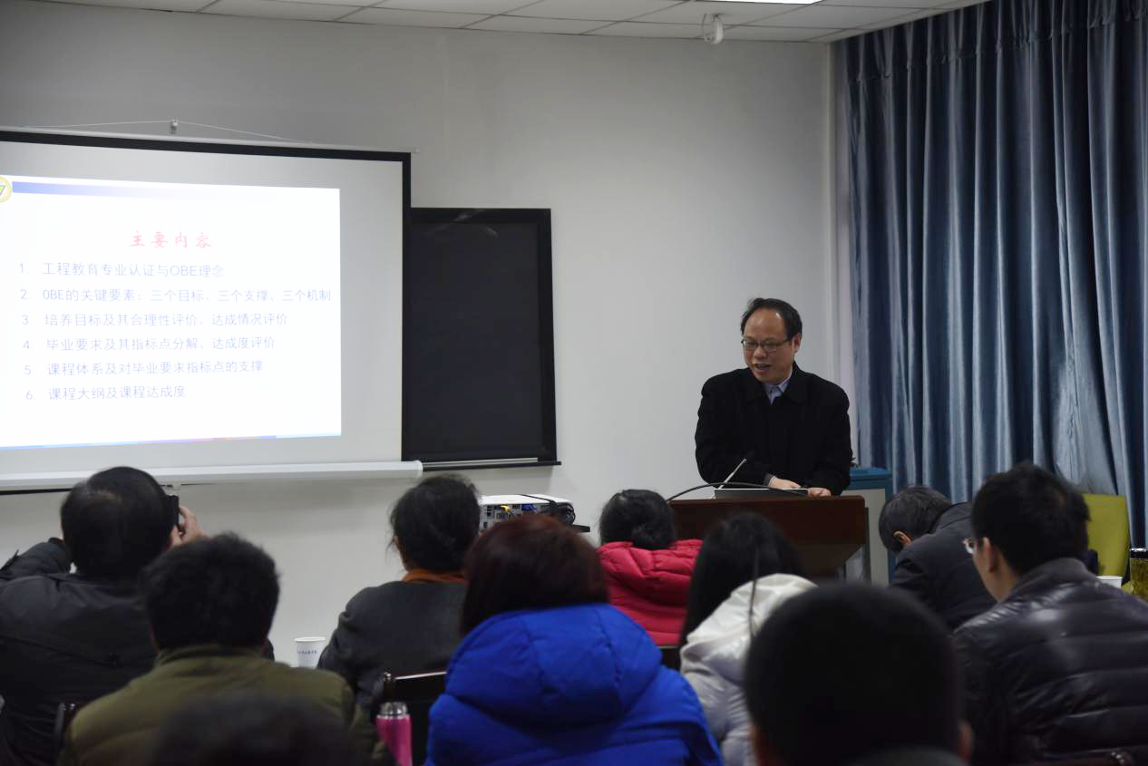 贾民平教授首先介绍了国际工程教育认证的由来及相关背景、OBE理念及关键要素、工程教育认证的标准和我国工程教育专业认证工作实践,随后就如何结合工程教育认证的标准来确定人才培养目标、毕业要求及其指标点分解、课程体系及课程教学大纲、达成度评价、持续改进等方面的内容进行了深入的讲解。会上,贾民平教授还与教师们进行了交流,回答了在人才培养方案制订时如何落实工程教育认证标准等问题,让在场教师受益匪浅。