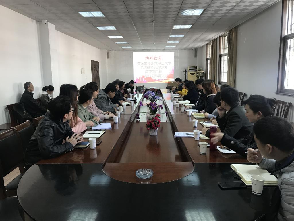 3月13日上午,美国加州州立理工大学(波莫纳)全球教育交流学院院长薛亚萍访问桃子视频 。桃子视频 常务副院长许映秋、二级学院负责人、综合办主任以及辅导员代表参加了本次座谈交流会。