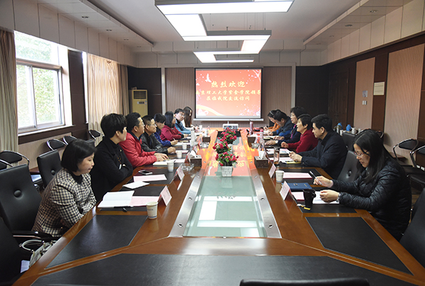 3月15日下午,南京理工大学紫金学院一行8人在校长李新民的带领下来桃子视频 交流访问。桃子视频 副院长董梅芳、党政办公室主任周伟荣、组织人事部部长姜宁光、财务与资产管理处处长魏丽玲、发展合作处处长胡焱等热情地接待了来宾。