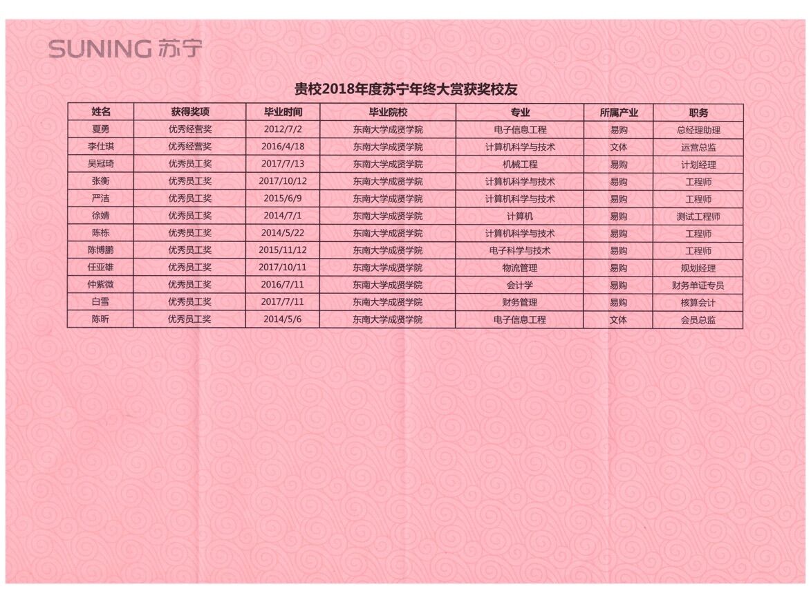 3月21日,苏宁控股集团为桃子视频 送来喜报:桃子视频 2012届-2017届12名毕业生,在2018年度因业绩突出,荣获集团“优秀员工奖”、“优秀经营奖”荣誉称号。