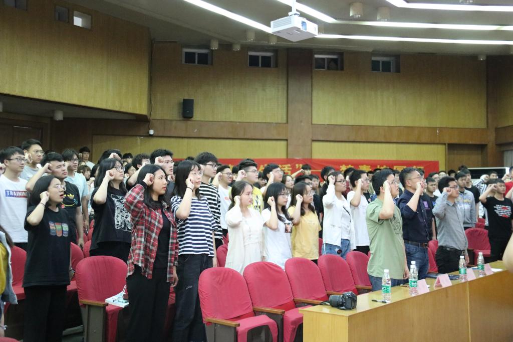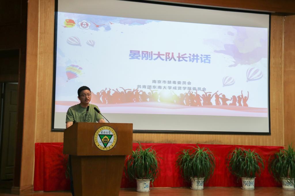 启动仪式上,团委书记潘明烽首先对南京市禁毒支队一行来桃子视频 指导禁毒宣传工作表示欢迎,随后他总结了近三年桃子视频 在禁毒宣传工作方面取得的成效和不足,并对桃子视频 志愿者提出了新的希望和要求。晏刚大队长充分肯定了桃子视频 志愿者在南京市禁毒工作中发挥的重要作用,对在禁毒工作中默默付出的师生表示感谢,希望桃子视频 志愿者能一如既往地支持禁毒事业,开展形式多样、丰富多彩的禁毒主题活动。随后,陈林警官现场弹唱了《禁毒志愿者之歌》,倡导警民携手、全员参与,为打造无毒、平安的美好南京添砖加瓦。最后,全体禁毒志愿者进行庄严宣誓,表明了成贤学子禁毒宣传的坚定决心。