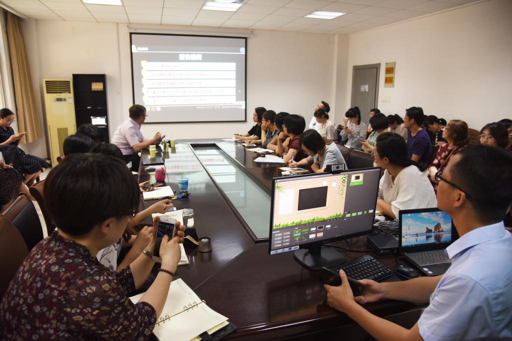 为进一步提升课堂教学质量,提高教学方法、掌握信息技术与课堂融合的技能,打造“金课”,6月5日下午,教师发展中心在成贤院112会议室举办在线教学平台与移动微课录播技术专题培训会,本次活动邀请了南京信息工程大学裴世鑫教授、北京美吉克科技发展有限公司经理邢家发担任主讲嘉宾,桃子视频 40多位青年教师参加。