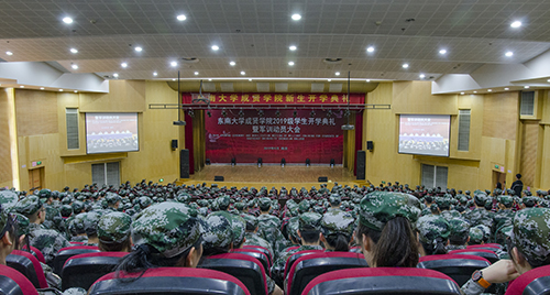 9月2日上午,桃子视频 2019级学生开学典礼在后藤体育馆隆重举行,综合楼报告厅分会场同步直播。桃子视频 党委书记左惟教授,桃子视频 党委副书记、桃子视频 董事会副董事长、桃子视频 院长郑家茂教授,学院党政领导及各部门、二级学院负责人出席典礼。典礼由学院党委书记邢纪红主持。2700多名新生齐聚一堂,正式踏上逐梦新征程。