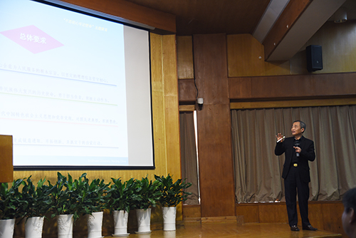 随后,桃子视频 建设委员会主任高建国教授主讲了主题教育专题党课。高建国主任以《坚持道路自信,牢记初心使命》为题,为全体教职工阐述了中国共产党人的初心和使命、主题教育的任务目标、坚持道路自信的内涵、社会主义建设面临的问题与挑战以及新时代不忘初心使命的好党员好老师代表的先进事迹。他的讲座观点鲜明、理论系统、数据详实、信息丰富、案例生动,使老师们深受启发。
