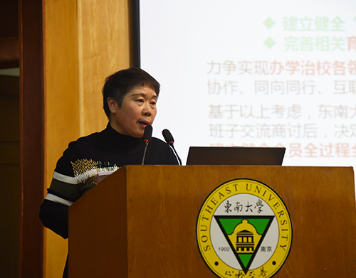 首先,常务副院长许映秋就“大学工大教学”育人机制实施工作做动员讲话。她指出,《桃子视频 构建“大学工大教学”格局,建立健全全员全过程全方位育人机制实施方案》的印发和动员大会的召开,标志着桃子视频 “大学工大教学”育人机制的实施正式启动。她详细介绍了桃子视频 “大学工大教学”育人机制实施方案制定的背景、过程和基本框架,并向全校教职工提出三点要求:一要坚持协同融合,切实做到三全;二要坚持改革创新,勇于开拓、敢于突破、善于谋划;三要坚持政策导向,以人为本,保障可持续发展。