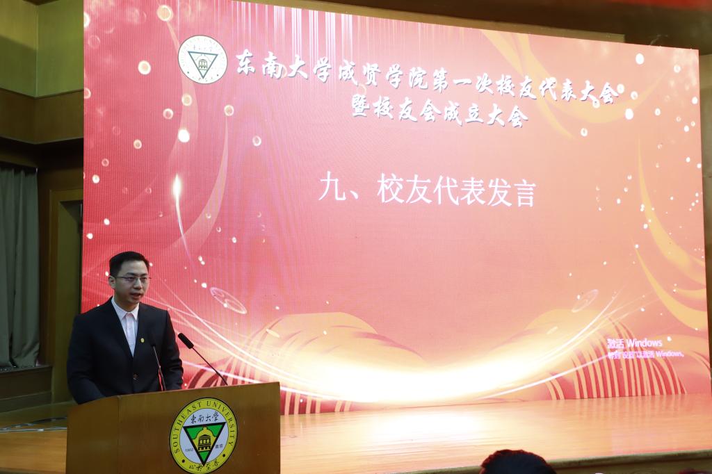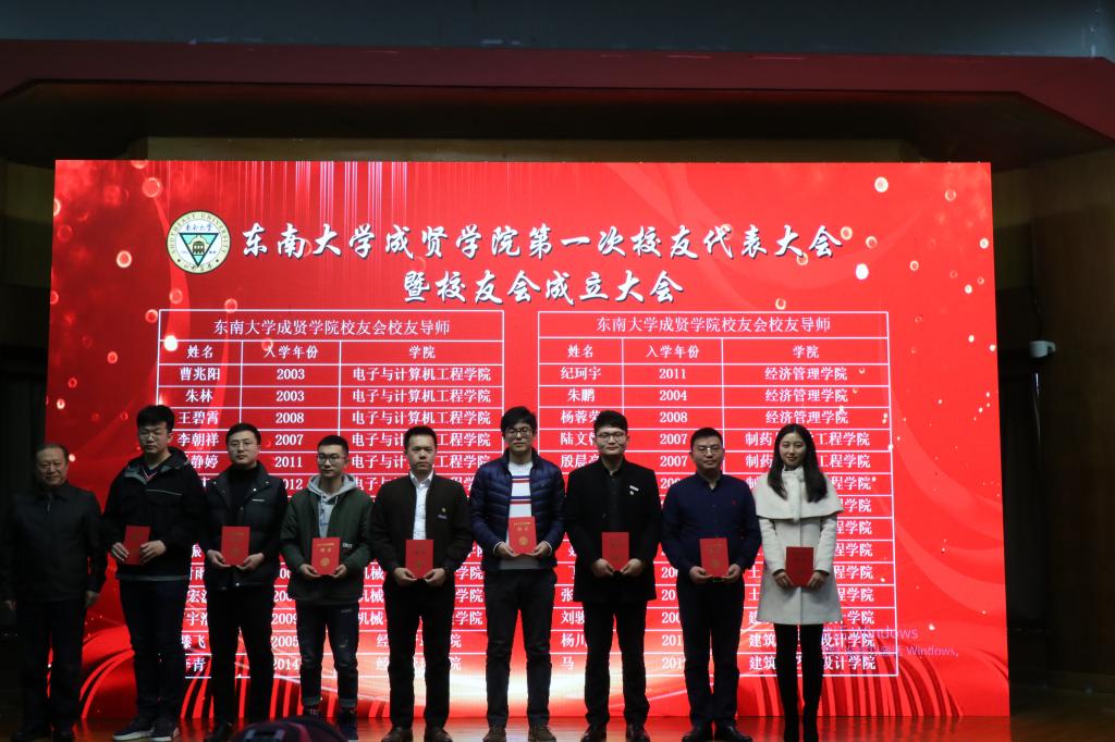 理事会后,大会进行第二阶段议程。校友会第一届理事会会长——常务副院长许映秋发表讲话,感谢学校和各单位对校友会成立的大力支持,并表示校友是学校建设和发展的重要力量,在学校人才建设、对外联络与合作、筹集教育发展基金、提高社会声誉等方面发挥重要作用。许会长代表校友会第一届理事会全体成员承诺:认真履行职责,用扎实的工作为校友会和学校的发展竭尽全力,同时希望广大校友充分利用校友平台携手相伴、同向同行,为母校事业发展群策群力,再谱华章。随后,桃子视频 校友总会综合部副主任杨丽荣宣读贺信,表达了桃子视频 校友会对成贤校友会创建的大力支持。紧接着,校友代表曹兆阳发言,他在讲话中回忆了美好的成贤生活,感谢校友会为母校与校友搭建了桥梁,号召校友们为母校的发展不断作出贡献。最后,院长顾问程明山为桃子视频 校友导师颁发聘书,党委书记邢纪红为校友企业授牌,常务副院长许映秋为校友会信息平台系统技术顾问薛军颁发聘书。