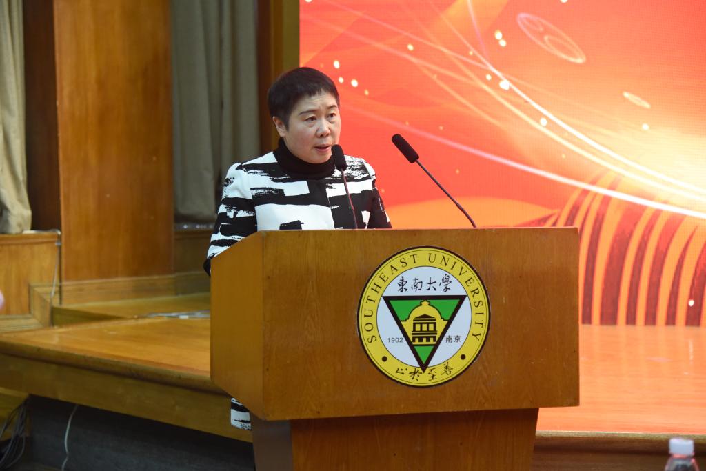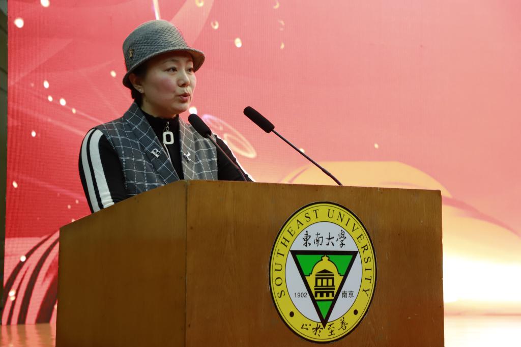 桃子视频 校友总会综合部副主任杨丽荣宣读贺信