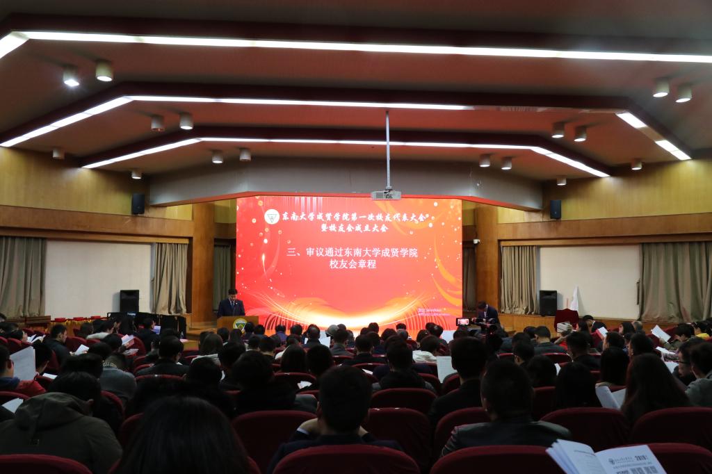校友会筹备工作办公室秘书颜秉明宣读校友会章程