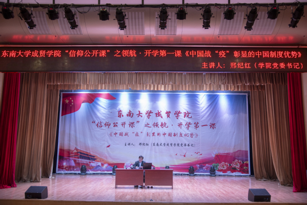 报告伊始,邢书记从中国战“疫”的艰辛历程;信心,从新中国防疫史中来;中国战“疫”彰显中国特色社会主义制度优势;坚定“四个自信”,实现伟大“中国梦”四个方面,通过疫情防控中展现的中国力量、中国精神、中国效率,进行了详细的剖析和讲解。随后,邢书记对比中西方的疫情防控战略及成果,进一步阐述了中国共产党的统一领导、集中力量办大事、整体利益置于首位、坚持人民主体地位、强大社会动员能力、依法治国等彰显的中国特色社会主义制度显著优势。报告会中,邢书记从学校疫情防控、东大抗疫英雄人物、学校志愿者等方面讲述了疫情防控中各级党组织和广大党员干部、志愿者冲锋在前、义无反顾、共克时艰、敢于担当的奉献精神,医护人员坚定“逆行”、忘我付出的救死扶伤、医者仁心精神,全国人民众志成城、团结协作、守望相助的民族精神,这些精神背后展现的是中华民族的向心凝聚力和磅礴气势,也体现了中国出色的领导能力、应对能力、组织动员能力和贯彻执行能力,为世界防疫树立了典范。