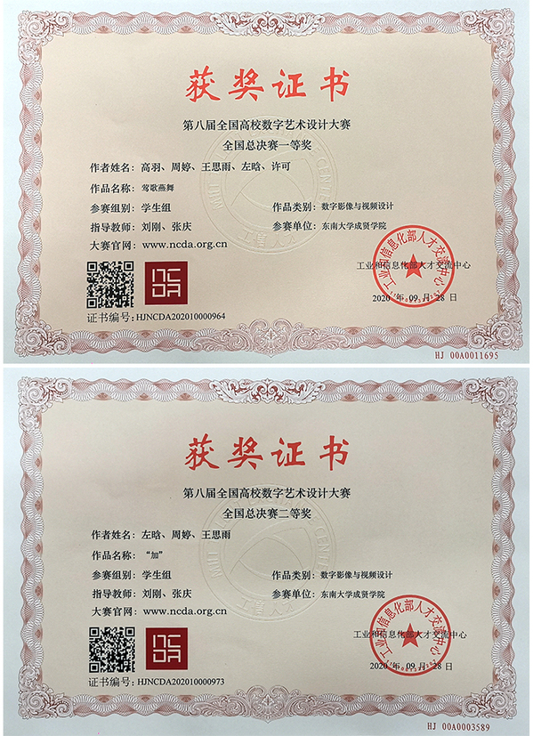 近日,“全国高校数字艺术设计大赛”评审工作已落下帷幕。我院动画专业刘刚、张庆等教师积极组织学生参加全国高校数字艺术设计大赛,共报送12件作品,其中获得全国总决赛一等奖1项、二等奖1项;荣获华东赛区一等奖2项、二等奖2项、三等奖2项。
